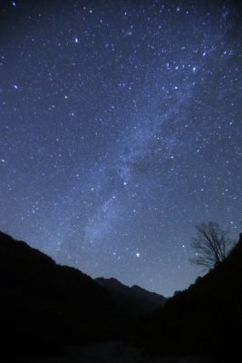 天気予報を見ると群馬県北部みなかみ町は、午前3時まで星マークなのだが、全くと言っていいほど当たらない予報に随分と悩みましたが、ダメ元と決めてみなかみ町湯檜曾川河川敷に出かけて見ました。到着して1時程はやはり谷川岳が雲に隠れていて、諦めて帰ろうかと思った頃に少しづつ山頂がシルエットで現れたために、さらに待機して約3時間半程の撮影をすることができました。しかし、その後はまた・・・
