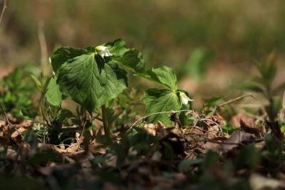 別名シロバナエンレイソウとも呼ばれていますが、その清楚な姿には趣があり毎年この季節に会いたい植物のひとつです。もちろん県北の山地では残雪の下ですから、まずは赤城自然園を訪ねての再会となります。そういえば同園には北海道にしかない(はずの)オオバノエンレイソウもありますが、これは整備過程に混じり込んだものと思われます。ややうつむきかげん(横向き)に咲くミヤマエンレイソウ、上を向いて咲くオオバノエンレイソウ・・・