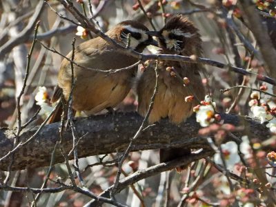 赤城山の西麓に位置する当地は春の訪れが遅い地域なのですが、今年は庭の端に植えてある梅の花がだいぶほころびはじめて、例年よりも早い光の春を感じることができます。そういえば昔から・暑さ寒さも彼岸まで・と言いますから、このまま順調に春に向かってくれるのでしょうか、それとも寒の戻りが来て三寒四温を繰り返しながら・・・*カオジロガビチョウ・外来種の害鳥とか