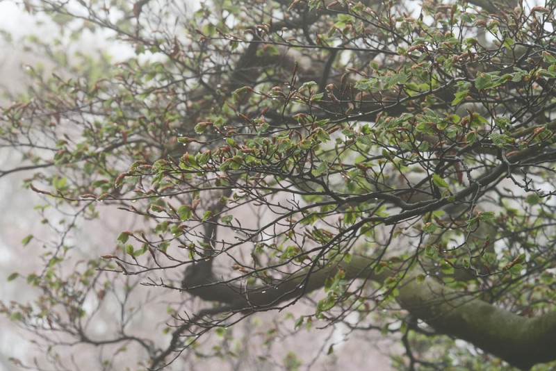 いつもならばツゲ峠から伊豆山稜線歩道を北に進むのですが、以前から気になっていた滑沢峠、つまり南のコースを歩いてみました。あいにく天候が回復しないで視界が悪く、あまり撮影には適した条件ではなかったのですが、それでも時折霧が流れて視界が広がり芽吹き始めたブナの森を撮影することができました。ちなみに、このルートをさらに進むと二本杉峠から天城峠にと続いています。しかし幾分登山道が荒れているために・・・